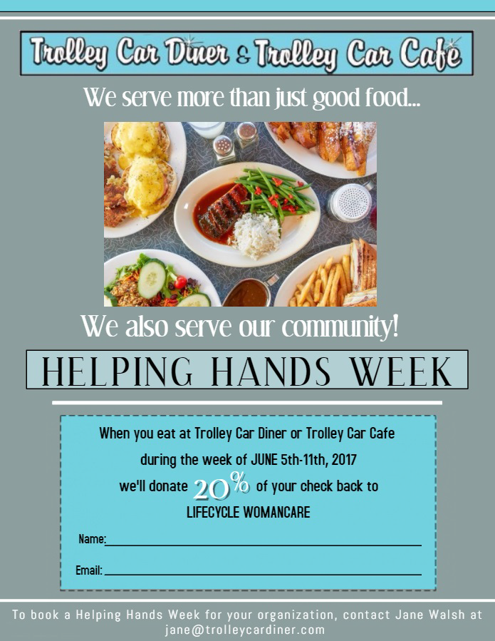 The Trolley Car Diner and Trolley Car Cafe are Philadelphia dining staples and are generously giving 20% of the price of the food & beverages back to LWC from those who present the below coupon at either location from Monday, June 5th until Sunday, June 11th!